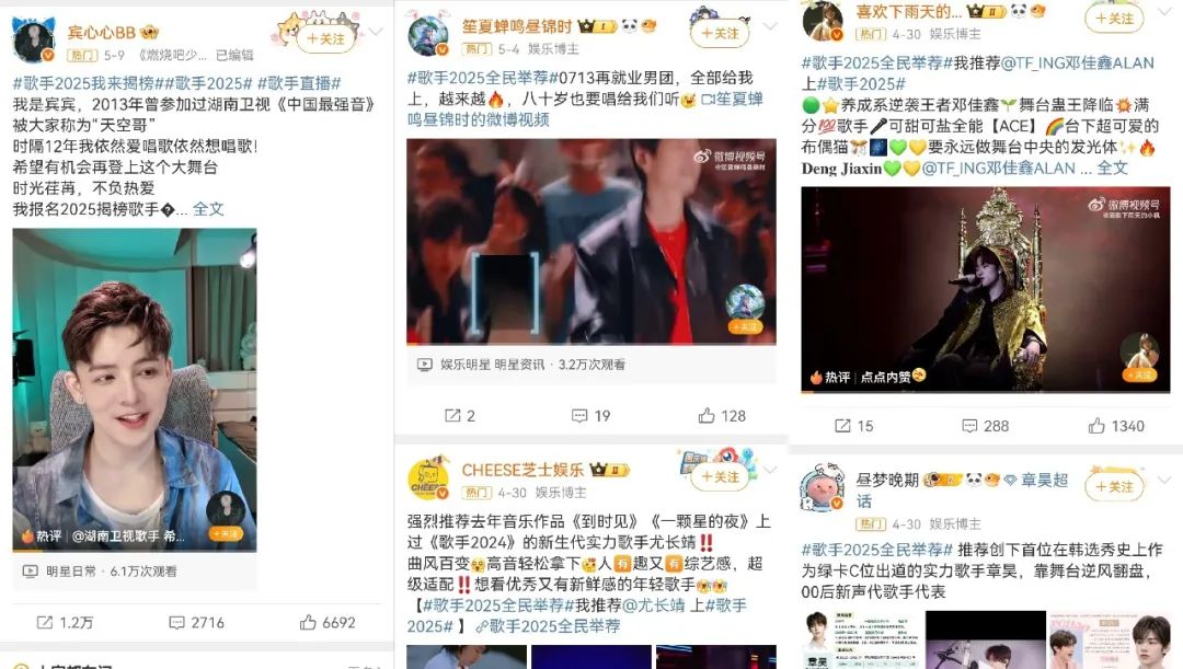 在社交媒体上,仍有歌手为了表达自己想登上歌手舞台的愿望,不断有网友推荐自己认为可以登上舞台的歌手。或许和最后的歌王之争相比,对于《歌手2025》来说,在主力阵容不尽如人意的情况下,观众对新血液和有能力的人的渴望甚至超过了上一季。《歌手2025》匹配“流量”后,选人可以更大胆、更细致。
