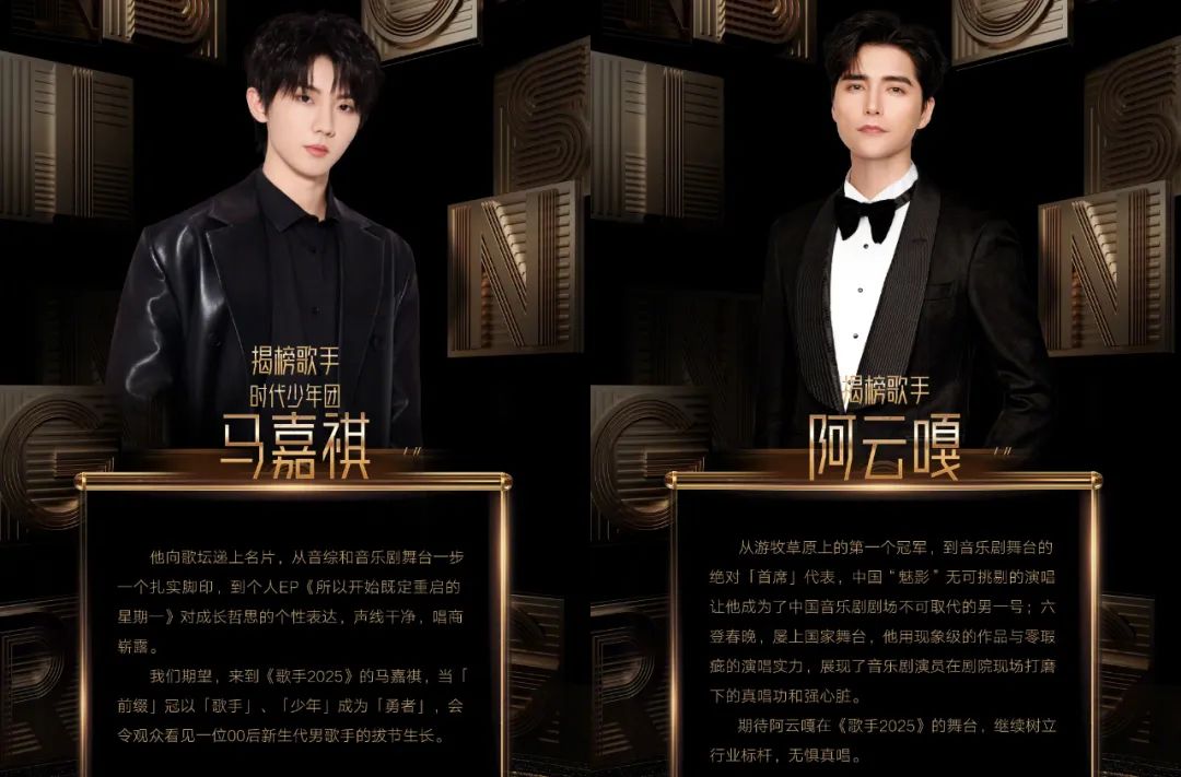 《歌手2025》急于导出“新手”,在悬疑设定上并没有上一季那么巧妙。马嘉祺和阿云嘎在第一期结束时直接被释放,外界一眼就知道不可能成为“狙击手”。