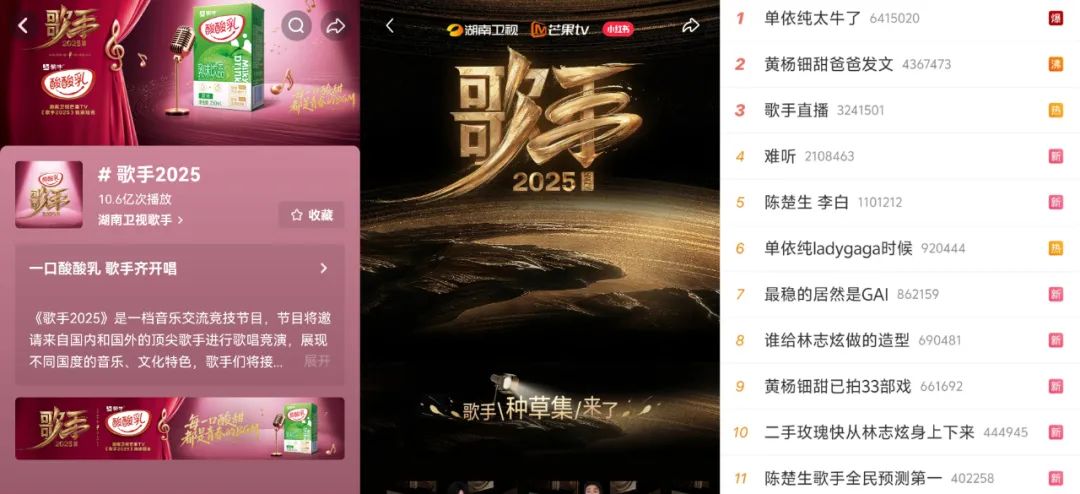 同时,正是这些“定向推广”的排名争议,或惊喜、惊讶或遗憾的情感拉扯,稳定了《歌手2025》的高度话题。