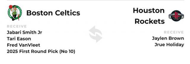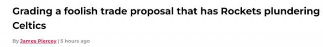 为了摆脱财务困境,凯尔特人确实有可能在休赛期交易霍勒迪,甚至送走布朗。这个计划很快引起了热烈的讨论,著名的休媒。 Space City Scoop 发帖吐槽这个方案是愚蠢的,并给予交易评级:C-。