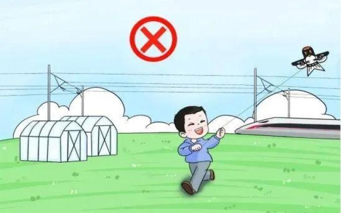 ▲禁止在铁路输电线路两侧500米范围内升起风筝、汽球等低空悬浮物,加固塑料温室、彩钢瓦等轻质漂浮物。铁路沿线500米。