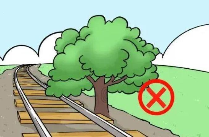 ▲禁止种植阻碍驾驶或有倒苗危险可能影响线路、电力、牵引供电安全的树木等植物。在高速铁路线路安全保护区内。