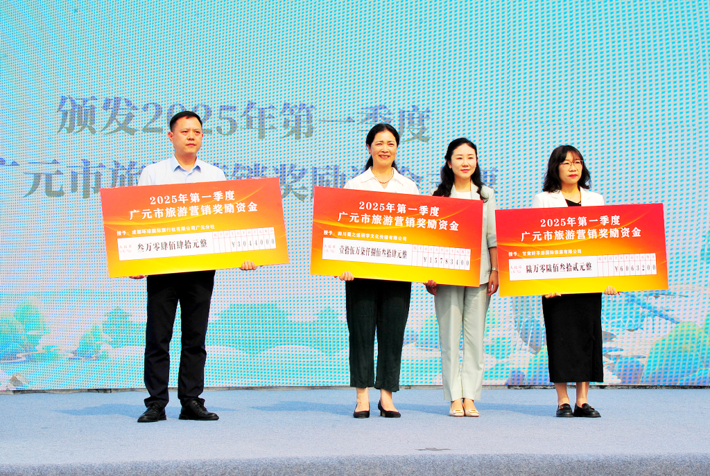 在当天的启动仪式上,广元市文化旅游推荐人和利州区文化旅游推荐人分别发布并推荐了2025年“5月5日”•19中国旅游日文化旅游活动,夏季旅游线路,优惠政策,优秀的利州文化旅游资源和旅游线路。仪式上,还授予广元分公司2025年第一季度广元市旅游营销奖励资金,包括四川蜀道研究文化传播有限公司、甘肃享游国际旅游有限公司、成都环球国际旅行社有限公司。