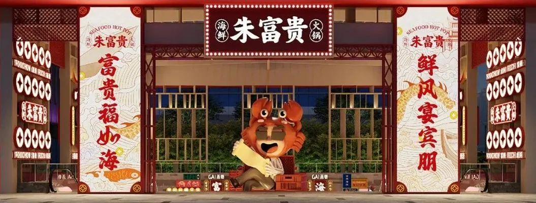 朱富贵海鲜火锅,福州本地海鲜火锅品牌,以“活鲜现捞,闽味本真”为标签。2019年,创始人朱祥康在台江区中防万宝城提供了第一家店铺。并且创造了“一家商店激活一个低迷商圈”的传奇。以“大众买得起的新鲜海鲜”突破市场,其首创的海鲜市场火锅方式,融合了火锅、市场、海鲜和自助元素,赢得了人们的青睐。
