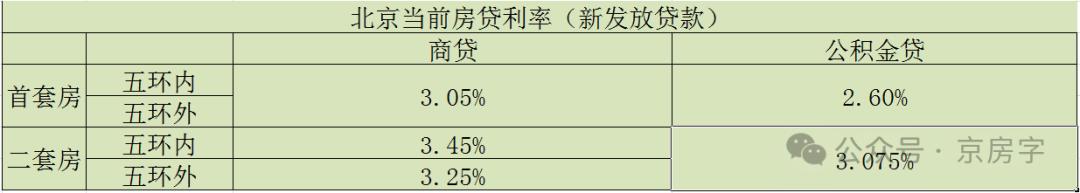 而且这个月LPR下降之后,如果是北京的话 首套住房贷款,商业贷款利率降至3.05% 。如果是二套住房,购买五环住房的商业贷款利率将降至3.45%,购买五环外住房的商业贷款利率将降至3.25%。