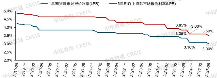 中国人民银行授权全国银行间同业拆借中心于2025年5月20日公布最新贷款市场报价利率(LPR),1年限LPR、LPR在5年以上下降10个基点,分别为3.10%。、3.60%调整到3.00%、3.50%。
