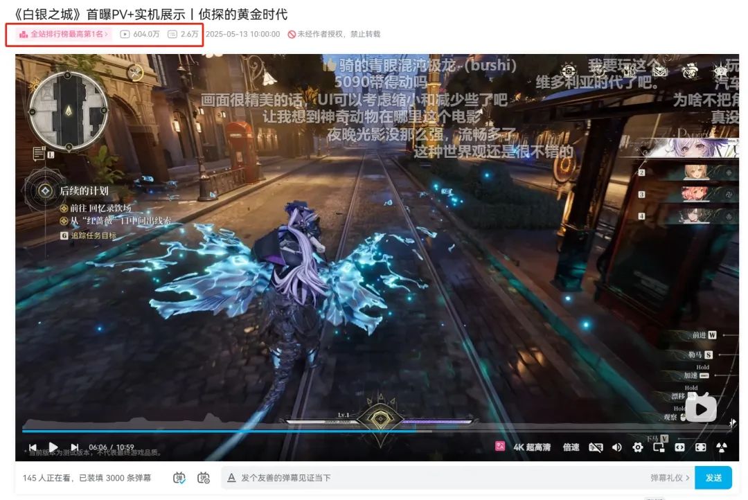 更令人惊讶的是,《白银之城》看起来绝对不是一个普通人。毕竟没有实力真的很难说现在要进入二游市场。凭借出色的实际表现,《白银之城》在哔哩哔哩几天内播出了600万。