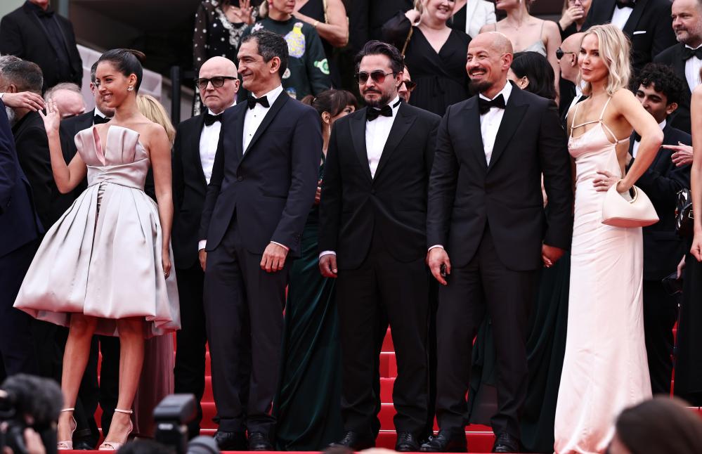 u2003u20035月19日,瑞典导演塔里克·萨利赫(前中)在法国南部小镇戛纳举行的第78届戛纳电影节上,在主竞赛单元电影《共和之鹰》首映后离开。新华社记者 高静 摄