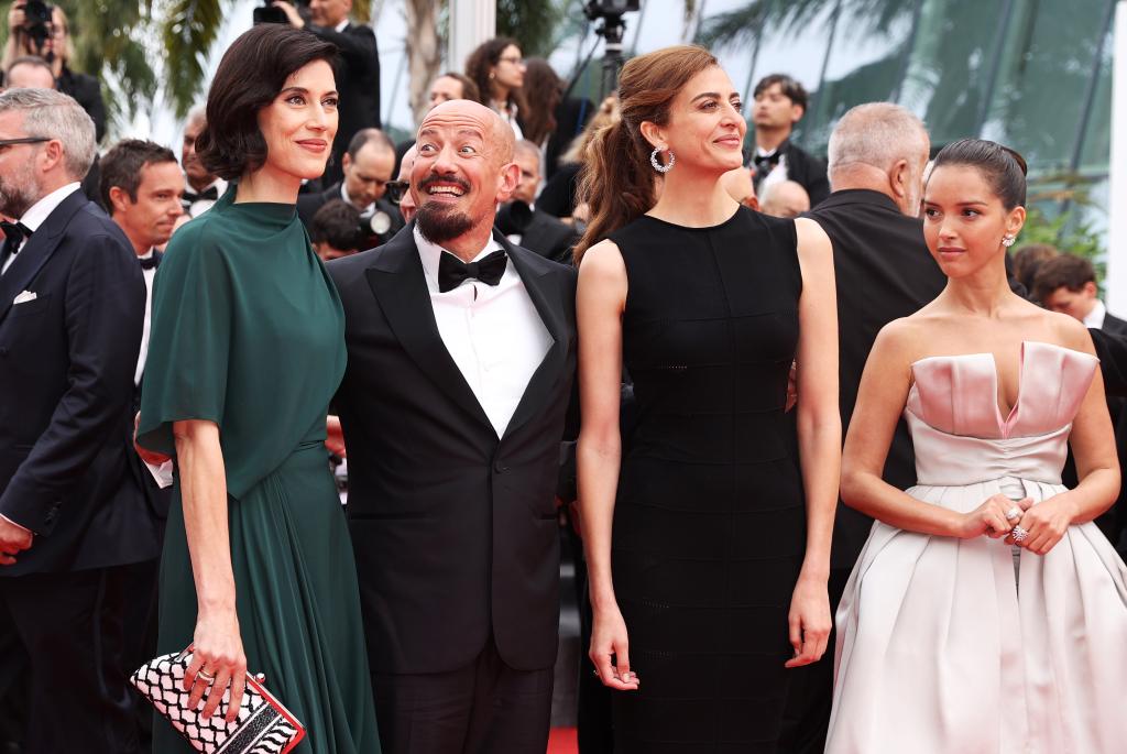 u2003u20035月19日,瑞典导演塔里克·萨利赫(左二)在法国南部小镇戛纳举行的第78届戛纳电影节上,在主要竞赛单元电影《共和之鹰》首映后与创作人员离开。新华社记者 高静 摄