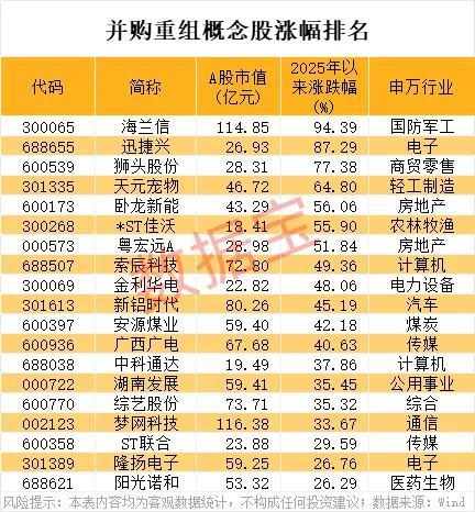 并购重组概念股平均涨幅超过17%