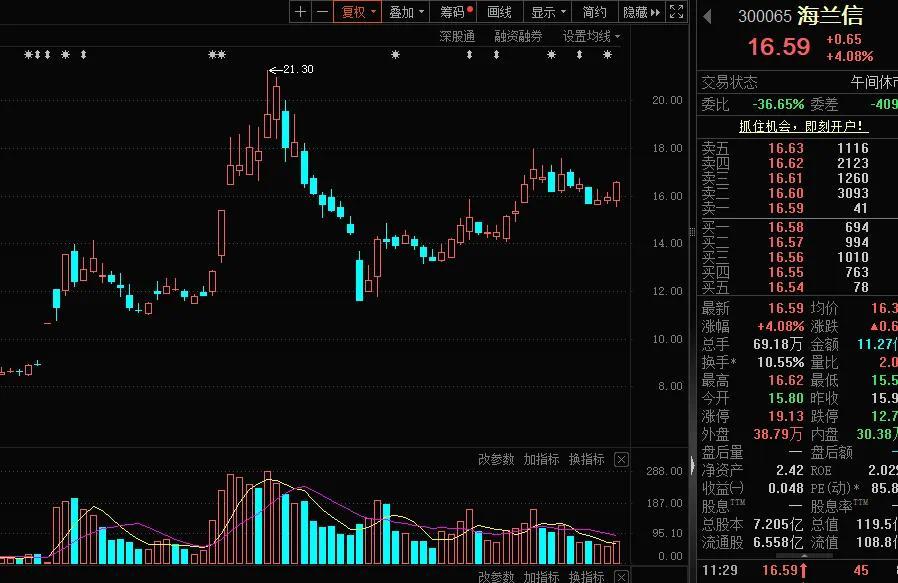 累计上涨近95%的海兰信(300065)。五月十九日,公司在2024年度业绩说明会上表示,目前并购事项正按计划积极有序地进行,并将定期发布进度公告。此前,海兰新闻宣布计划收购海南海兰玉环海洋信息技术有限公司100%的股份。通过收购,海兰新闻有望进一步整合资源,拓展海洋信息技术领域的业务领域,提高公司在行业内的竞争力。