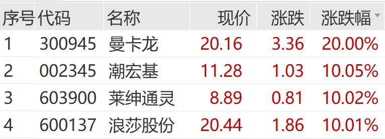 此外,a股纺织服装、商业零售、食品工业等板块早上都有本地市场,曼卡龙、潮宏基、莱绅通灵、美妆、贝因美、佳和食品等日线涨停。