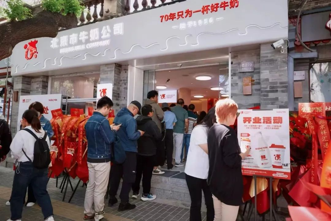 该店位于鼓楼东街店,是北京市牛奶总站三元食品前身的旧址。近日,三元食品在店铺迭代复兴后,更名为“北京牛奶公司”,重新开业。