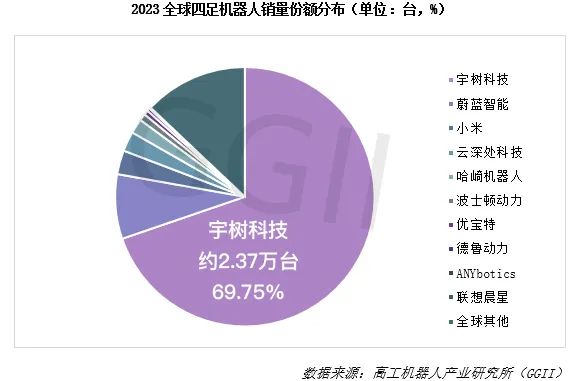 GGII调查数据显示,2023年,宇树科技占全球四足机器人销售额的69.75%,排名第一。另外,宇树早期的投资者也向媒体透露,自2020年以来,宇树的财务报告每年都在盈利。