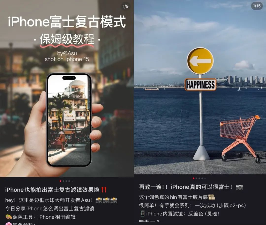 美图秀秀、醒图等修图软件里,有专门的“富士滤镜”类目;小红书上,#富士感调色##仿富士调色#等话题的累计浏览量超2300万次,更有不少“如何用手机拍出富士感照片”的教程帖子——简直是复古思潮对抗科技发展的最好例子。