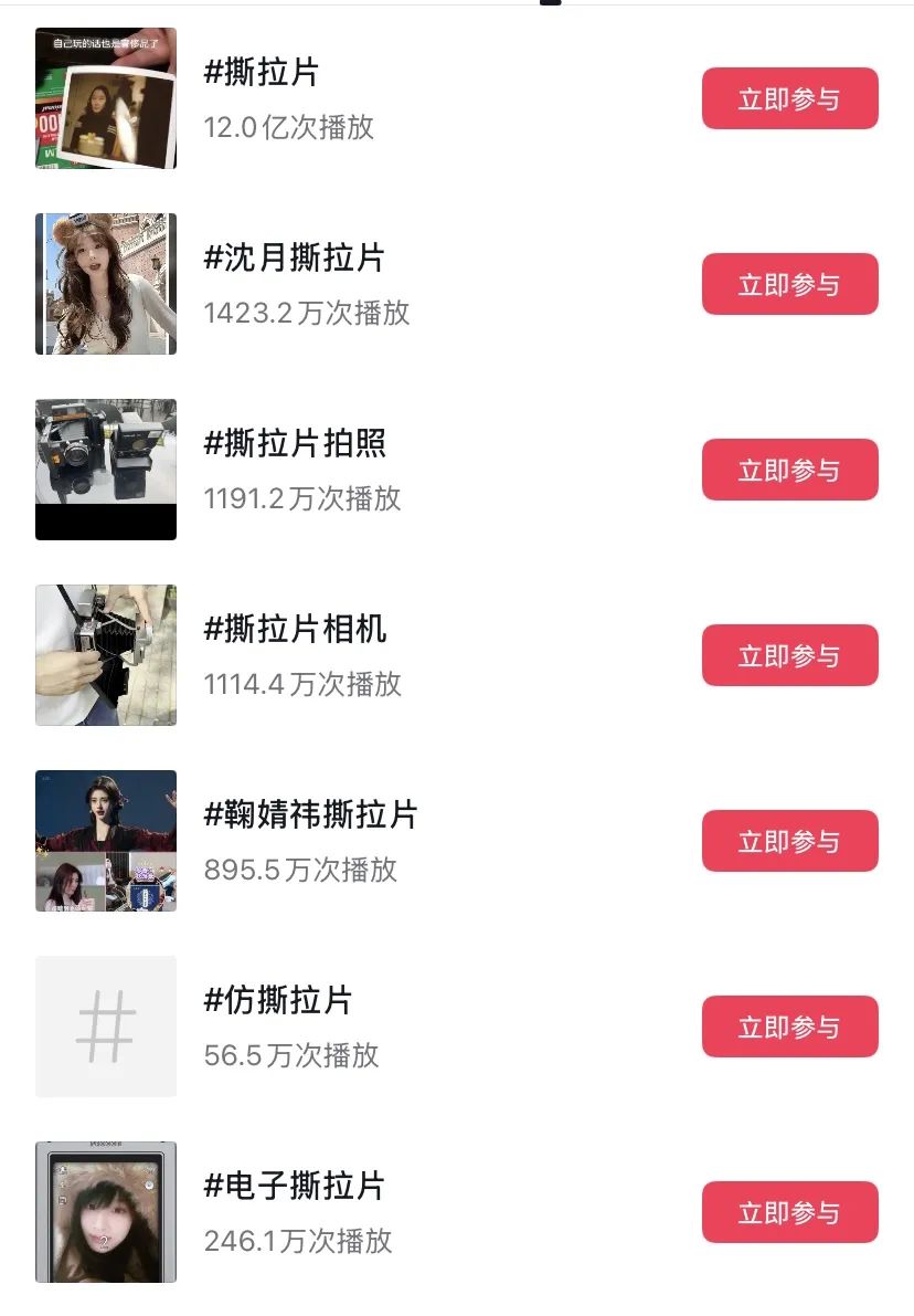 接下来的半个月里,刘诗诗、虞书欣、黄子韬、古力娜扎纷纷跟进,用一张张“怼脸拍”的撕拉片,形成网络声量的滚雪球效应。截至发稿前,#撕拉片#话题在抖音的播放量超12亿次、在小红书的浏览量超6.5亿次。