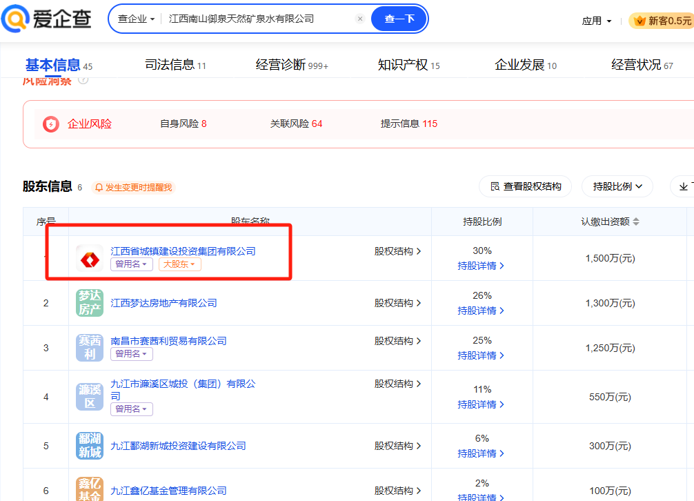 有意思的是,爱企查显示,南山御泉的大股东仍是江西城投,这意味着同业竞争的问题还没有得到解决。