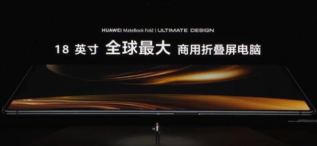 但是,如果只有手机,支撑鸿蒙系统生态的大拼图是不够的。发布会后半段,我们的余总经理隆重登场,拿出一台重型商品折叠电脑。 —— MateBook Fold 非凡大师。