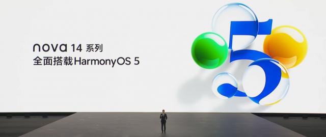 一是普通消费者最关心的智能手机领域,华为此次发布了新的智能手机领域。 nova 14 这个系列的手机,而且这个系列已经配备了 HarmonyOS 5 。
