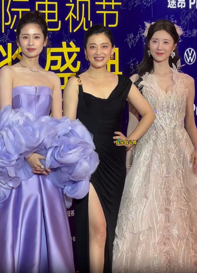 《六姐妹》剧组的颖儿、梅婷、曹斐然有着不同的风格,各有各的美。颖儿穿着紫色筒顶连衣裙,身材苗条,身高出众;梅婷穿着黑色高开叉连衣裙,气质极佳;曹斐然的连衣裙属于仙女风格,光看就好看,但是和两个姐姐同框是不够的。