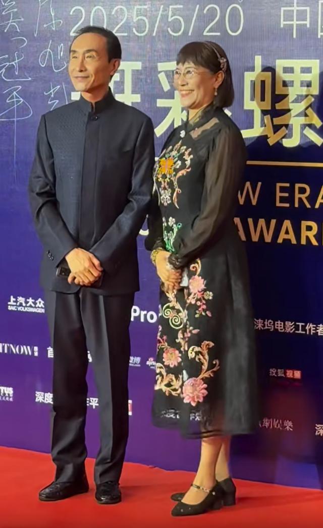 张光北与陈炜夫妇则是黑白搭配,前者看上去稳重,后者的造型更显年轻。