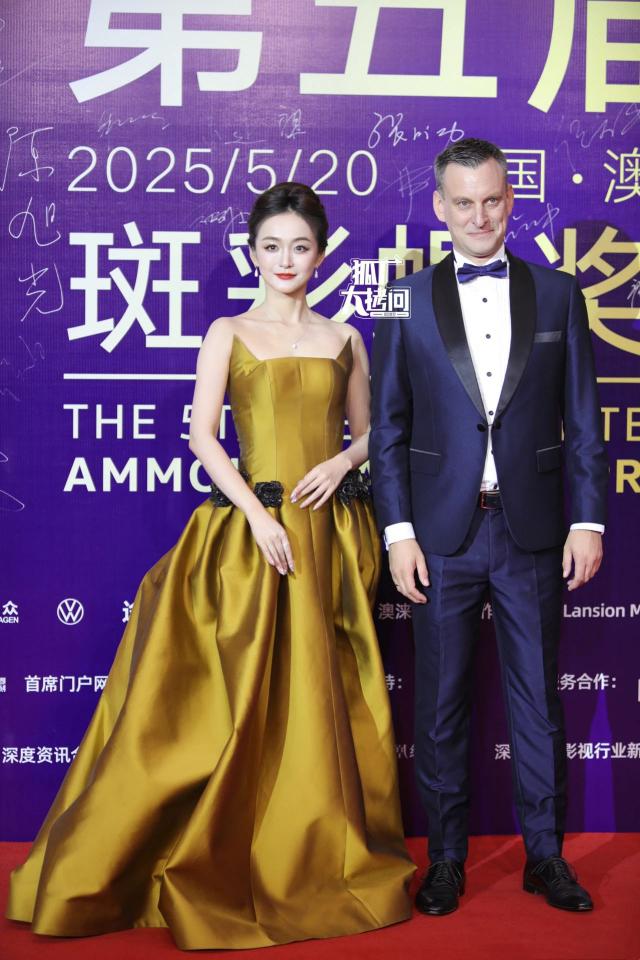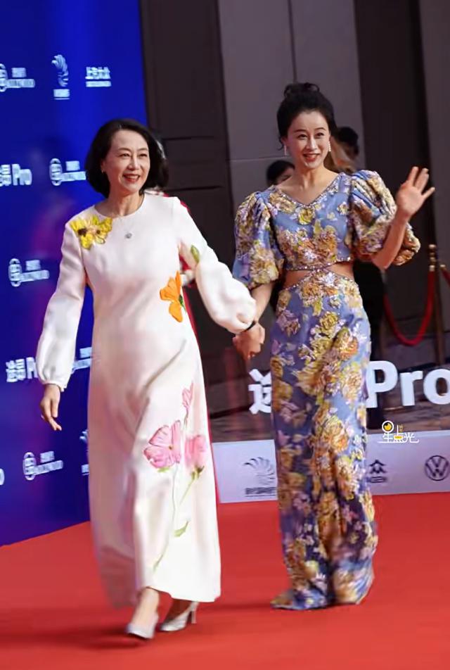 吴玉芳和张晶晶的连衣裙都有花瓣元素。穿着刺绣白色连衣裙的吴玉芳优雅而充满活力,张晶晶的蓝色露腰花瓣连衣裙凸显出纤细的腰围。两人在红地毯上被捕的照片给人一种非常有活力的感觉。