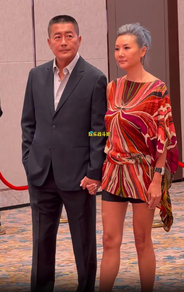 61 岁高曙光跟小 16 年迈的妻子王玲手牵手出现在红毯上,留下了寸头的高曙光。穿上西装后,她有一种大老板的气质。王玲的搭配与大多数中年女性不同。银色的头发搭配短裤和高跟鞋,充满个性。