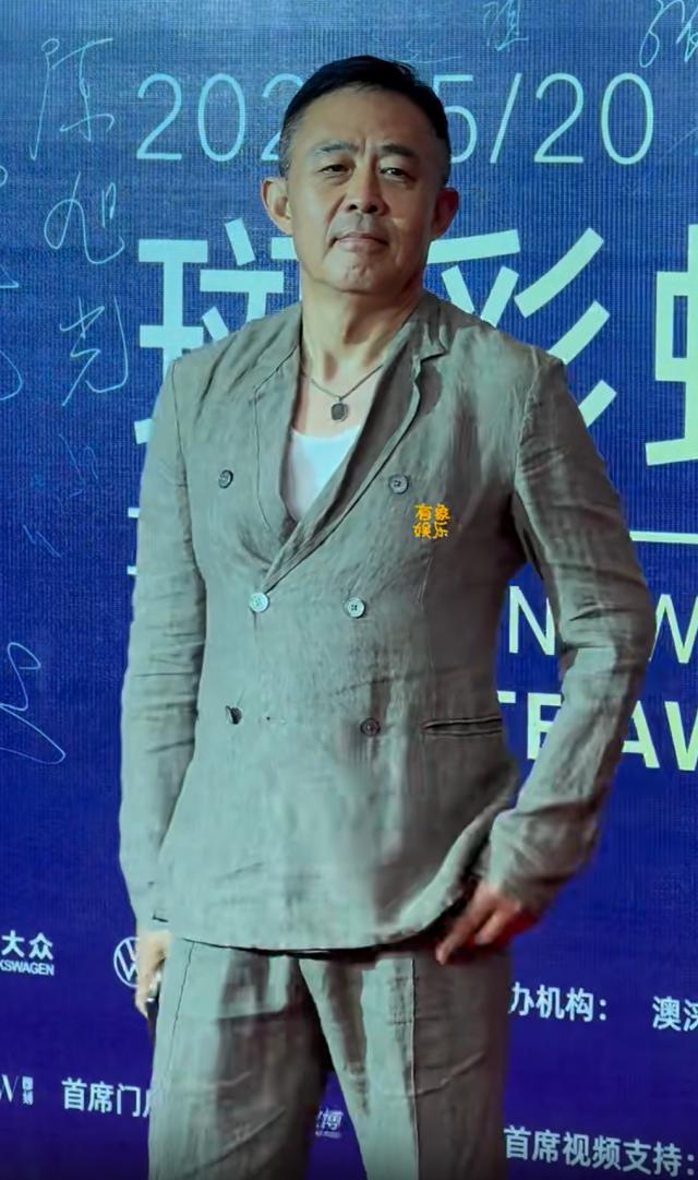 侯勇似乎胖了一点,以至于本该搭起宽松休闲的亚麻西装,竟然有一种裹住身体的感觉。