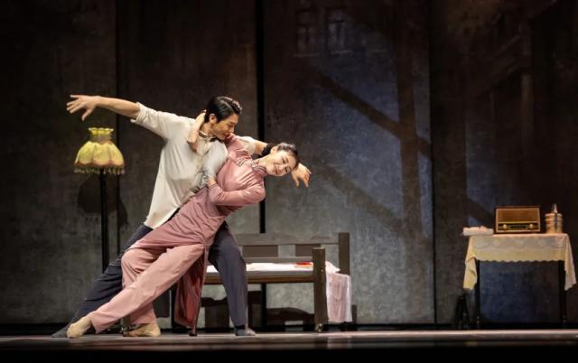 《永不消逝的电波》是朱洁静舞剧创作的另一座山峰。在剧中,她饰演的兰芬,遵循着“重人物,走心”的表演路线。优秀的人物塑造,突破性的表演,将中国舞剧的叙事功能提升到一个新的方面,被业界称为“舞剧表演的教材”。有两个表演细节值得一提:作为中共地下党的丈夫,目睹战友被残杀,回家后悲愤难忍。这时,兰芬放下手中的红色绒线团,把丈夫紧紧地抱在怀里,眼睛投射出深沉而坚定的光芒——让内心的情感紧张感染了每一位观众,感受到了女性的光辉。不能说这不是对舞剧表演范式的大胆突破,但要做到这一点,需要强大的表演能量支撑;另一方面,兰芬在任务中射击间谍,第一次射击时抑制不住紧张和恐惧。想哭又怕暴露身份,朱洁静把抑郁中的颤抖表现得格外真实,完全能感觉到是从心里渗出来的,以至于发梢都在颤抖,不是那种“表演”的感觉。