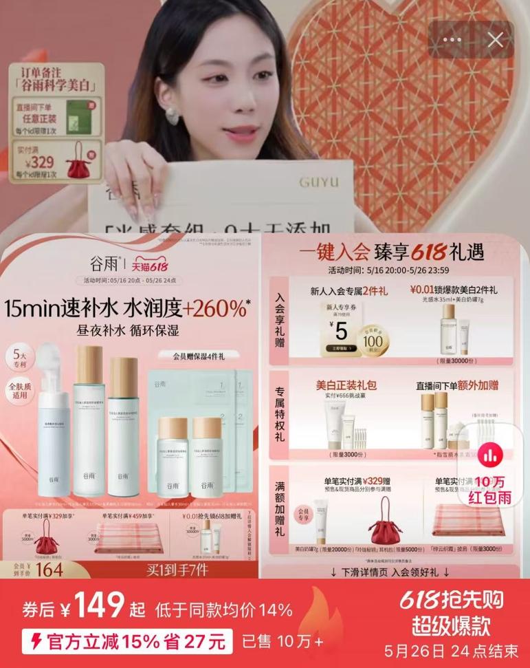 首先是淘宝直播,这是谷雨的发家之地。创始人王安宁曾公开表示,早在2016年7月,谷雨就尝试过淘宝直播,半年后销量就增加了。当时淘宝直播刚上线。