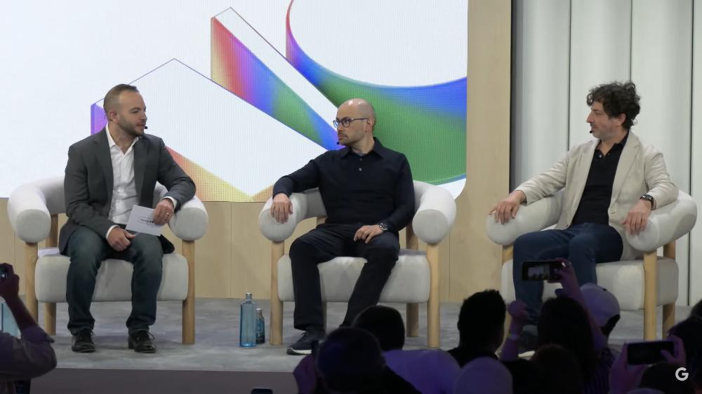 从左到右分别是:Big 亚历克斯·坎特罗维茨罗维茨,Technology创始人(Alex Kantrowitz)、德米斯·哈萨比斯·DeepMindCEO(Demis Hassabis)谢尔盖·布林·谷歌创始人(Sergey Brin)