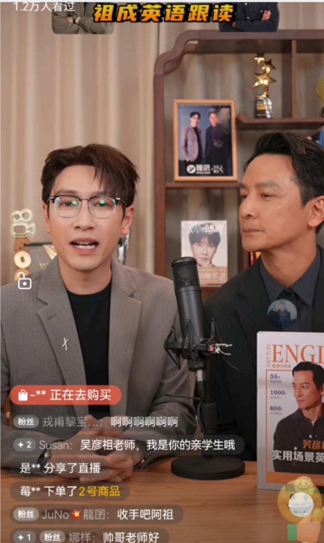 根据杨家成的说法,“90天‘祖成’英语课程是吴彦祖和我一起开发的一门全新课程。只要价格398元,就包括购物车里的所有内容:168节双语视频课、30天AI口语陪练、90天真人纠音、吴彦祖签名口语教材。”