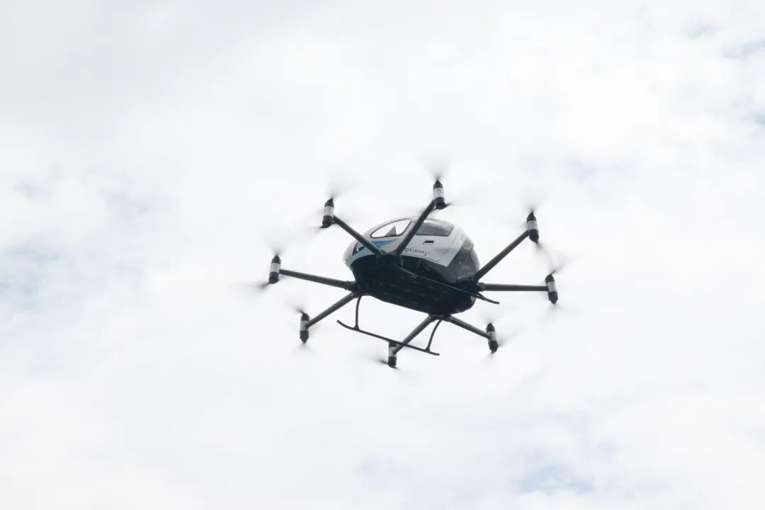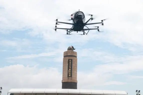 5月21日上午,在市民的注视下,一架无人驾驶载人eVTOL缓缓起飞,在椒江江滨公园“浙东千里海塘纪念碑”前平稳飞行一段时间后缓缓降落。这是世界上第一次在台州验证无人驾驶载人eVTOL的航行,也是椒江“低空经济”发展的积极探索。