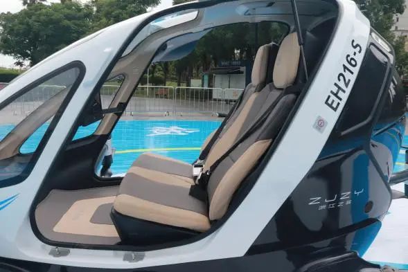 当天航行的是EH216-S型号,是世界上第一个获得生产许可证的机型。(PC)、型号合格证(TC)、标准适航证(AC)EVTOL,长6.05米,宽5.73米,高1.93米,纯电驱动,最大飞行速度可达130公里/小时,可搭载2名乘客(本次验证航行未搭载乘客)。乘客进入后,舱内除了一个显示飞机和地图信息的大屏幕外,没有看到其它仪器和设备。该机型不需要飞行员或乘客考驾照。相反,它可以实现空中无人驾驶点对点航行,可以满足载人交通、旅游、短途物流和医疗急救的需要。