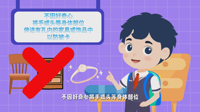 不要因为好奇而把头或手等身体部位伸进有孔的家具或饰品中,以免被卡住。