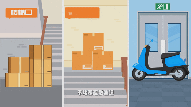 保持疏散通道畅通,有意识地维护消防设备的完整性,熟记应急逃生路线。