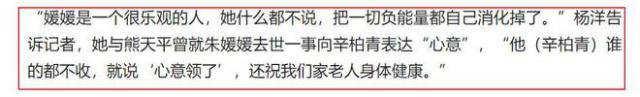 比如朱媛媛的亲戚杨洋透露,得知朱媛媛去世的消息后,按照传统,她和丈夫给辛柏青送礼物,但辛柏青拒绝了礼物。