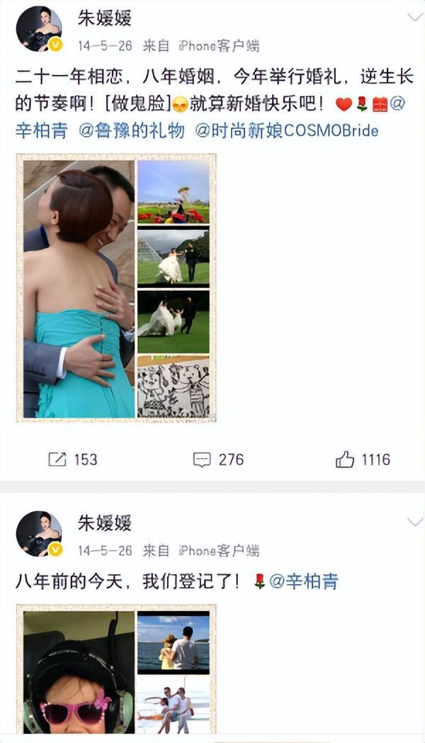 翻看辛柏青的社交帐号,可以发现,在此之前到结婚纪念日时,他会发文纪念。