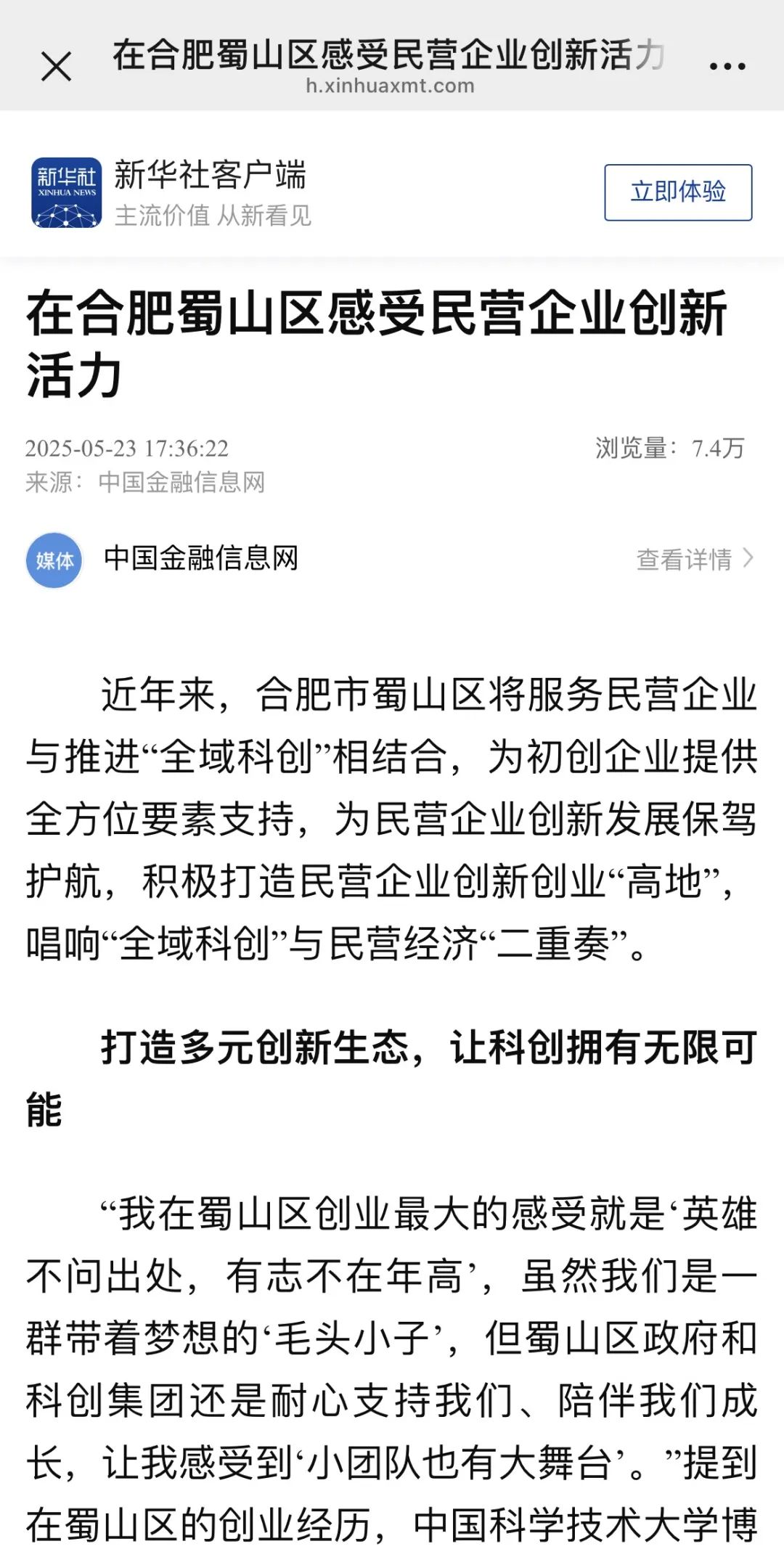 “我在蜀山区创业最大的感受就是‘英雄不问出处,抱负不高’。虽然我们是一群有梦想的‘无知少年’,但蜀山区政府和科技创新集团还是耐心支持我们,陪伴我们成长,让我觉得‘小团队也有大舞台’。”中国科技大学博士生杨远帆提到自己在蜀山区的创业经历,感慨万千。