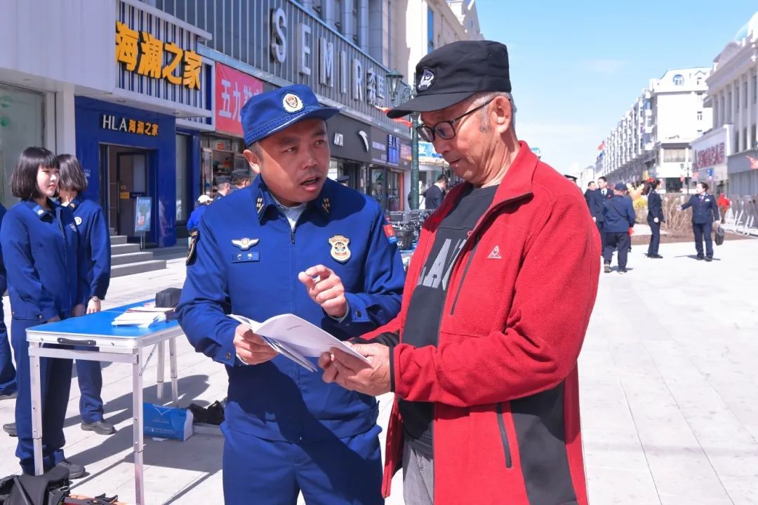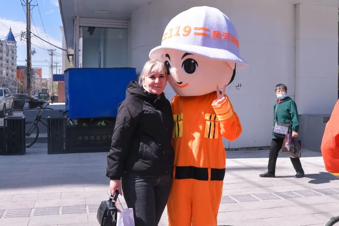 在消防宣传咨询台,围绕来访咨询的市民,支队工作人员以新修订的《黑龙江省消防条例》为宣传重点,辅以《家庭消防安全知识》、《电动自行车火灾防范注意事项》等经济实用易懂的宣传资料,耐心回答市民生活中遇到的各种消防安全问题,如何识别合格的消防设备,发放手提袋等消防宣传资料。向大众普及消防安全知识。并随机对路人进行消防安全知识有奖问答。并且随机对路人进行消防安全知识有奖问答。“火灾现场应该如何有效地逃生?”“安全用火需要注意哪些问题?”“电动自行车怎样规范停车充电?”“发生火灾可以乘坐防火电梯吗?“正确的答案还可以得到一个消防主题钥匙扣作为奖品,充分调动了观众学习消防安全知识的积极性。两名身穿消防卡通娃娃的宣传员成为市民打卡拍照的亮点。几名俄罗斯游客也被吸引去了解消防安全知识,合影留念,掀起了全体员工“学消防,懂消防”的热潮。