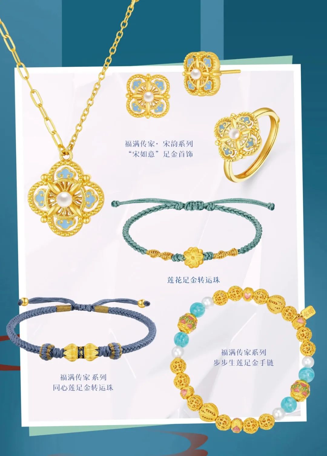 2024年,六福珠宝推出“福满传家-宋韵传家”系列,采用传统丝绸工艺制作宋锦纹路,风格优雅,恢复宋代艺术风格;Lola Rose邀请汤唯代言新的非遗工艺品,将“大女主”形象与新产品「常青藤」意图相互照顾,寓意四季常青的韧性。