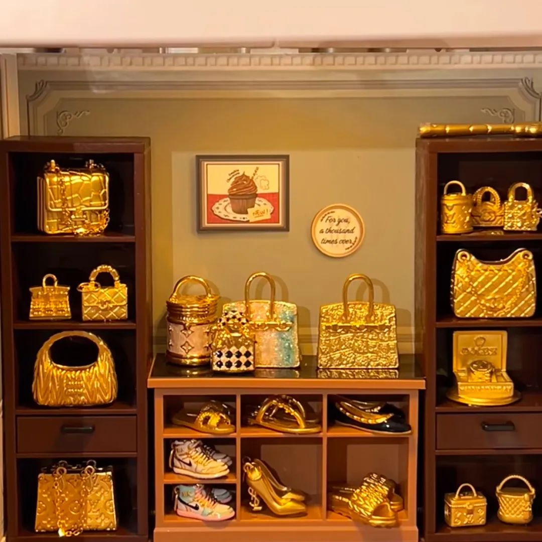 在这里,黄金被制成各种创意小块:香奈儿包按比例缩小,制成黄金模型,客户用透明的亚克力盒展示黄金包,而不是收集真皮包;或者把卡通人物Chiikawawa、游戏《塞尔达传奇》的主角林克做了一个黄金吊坠——任何流行的IP都可以转化为黄金首饰。