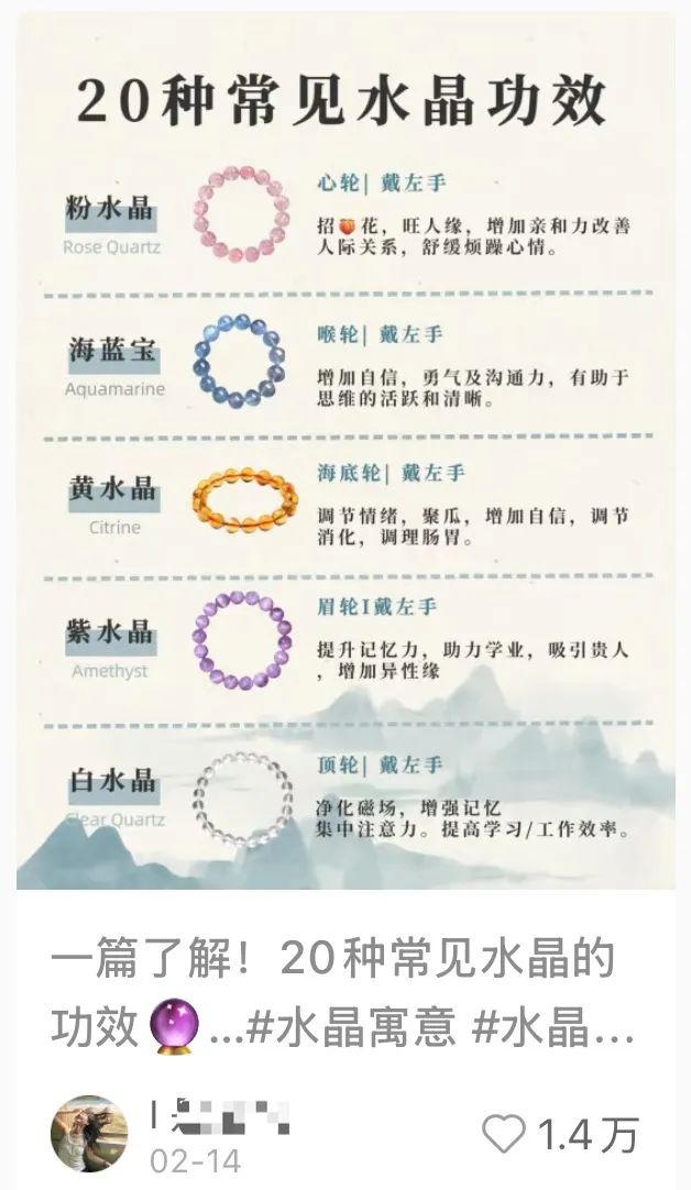 以前水晶首饰多作为一种装饰品,因其美观和色彩丰富而受到喜爱。如今,消费者对其意义的认知更加多样化,水晶首饰被赋予了能量属性和气场意义,如代表财富的黄色水晶、寓意智慧的紫色水晶、新的 “网红” 绿色幽灵等,满足了消费者对美学与玄学的双重追求。