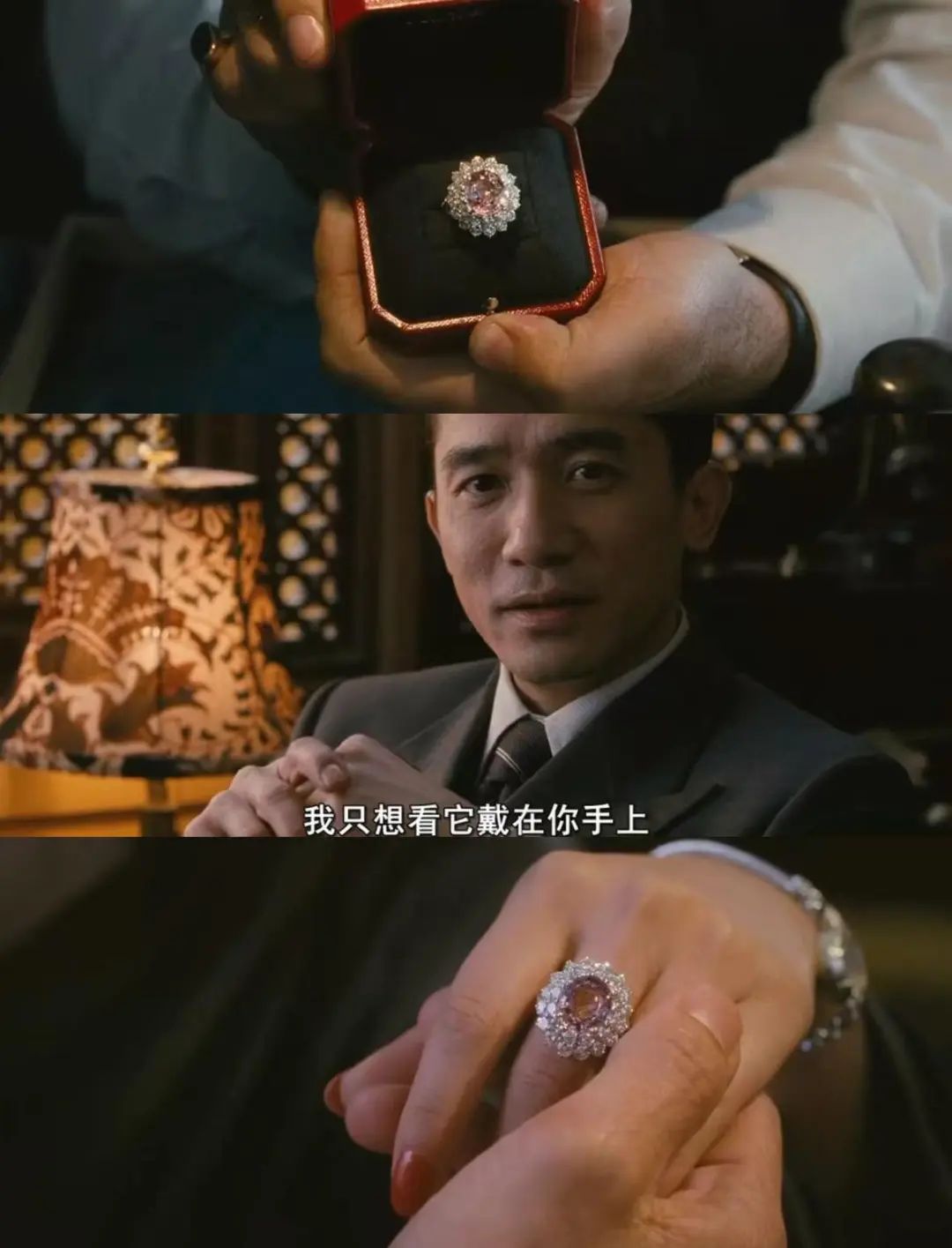 在2007年的《色戒》中,易先生在结局中逃跑的关键在于6克拉卡地亚粉钻。王佳芝看着自己的钻石闪闪发光,把这种物质变成了爱的证据,促使关于生死的“快走”随口说出来。