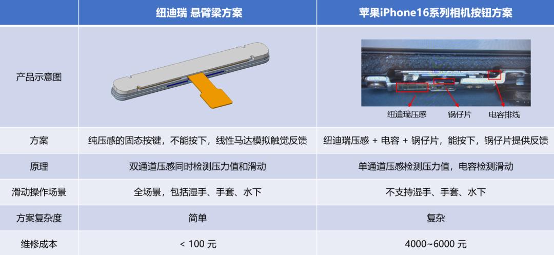 iPhone16相机开关按钮拆解图- 纽迪瑞/NDT压感sensorrs