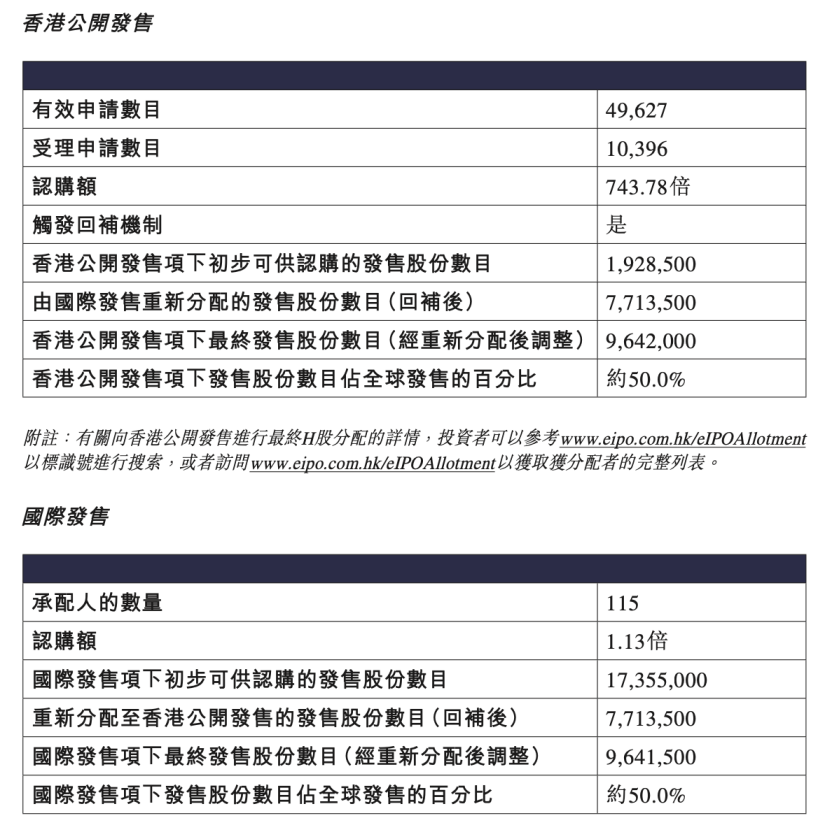 根据吉宏股份的公告,吉宏股份在全球范围内发行了6791万股H股,占发行后总股本的15%,发行价格为每股7.68港元,发行规模约为5.2亿港元。该项目实现了1.6倍的国际配售认购,49.4倍的香港公开销售认购,触发了回拨。最终,国际配售约占发行股份的70%,30%的香港公开销售。