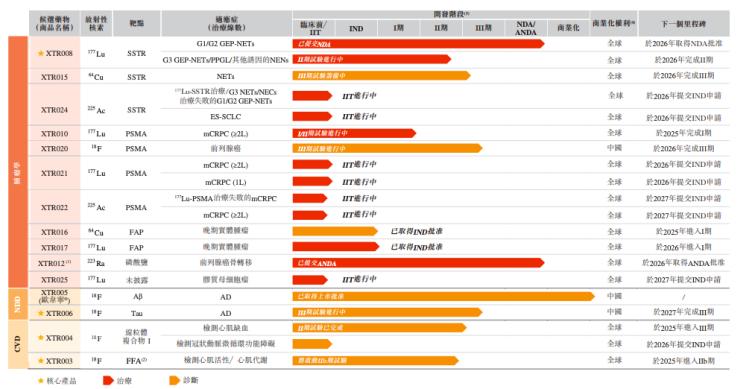 在上述管道中,先通医药在中国处于领先地位。例如,XTR008将于今年4月提交NDA申请,预计将于2026年获准,预计将成为中国第一个SSTR治疗核药,解锁市场50亿元。
