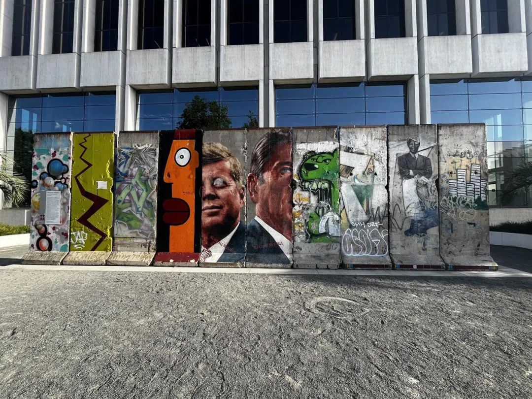 柏林墙倒塌后,分散在世界各地。在这里,洛杉矶保留了美国最长的柏林墙,墙壁重量为25吨,高度为3.7米,长度为11.6米,包括10块墙。