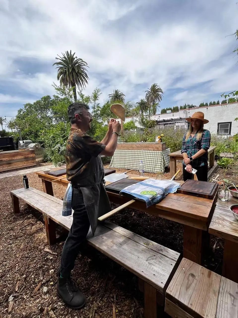 下一步,最让人跃跃欲试的环节——用小院子里的植物做素食比萨。