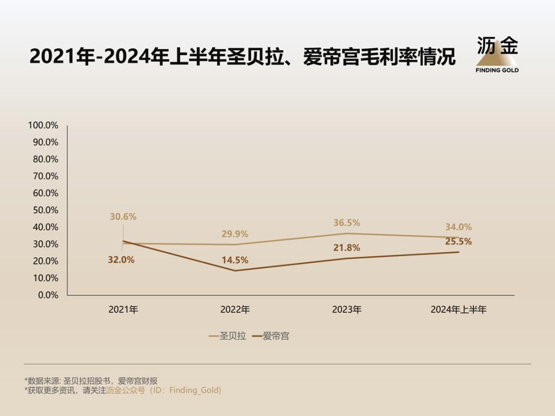圣贝拉的毛利率在2024年上半年只有34%。而且这不是个案。